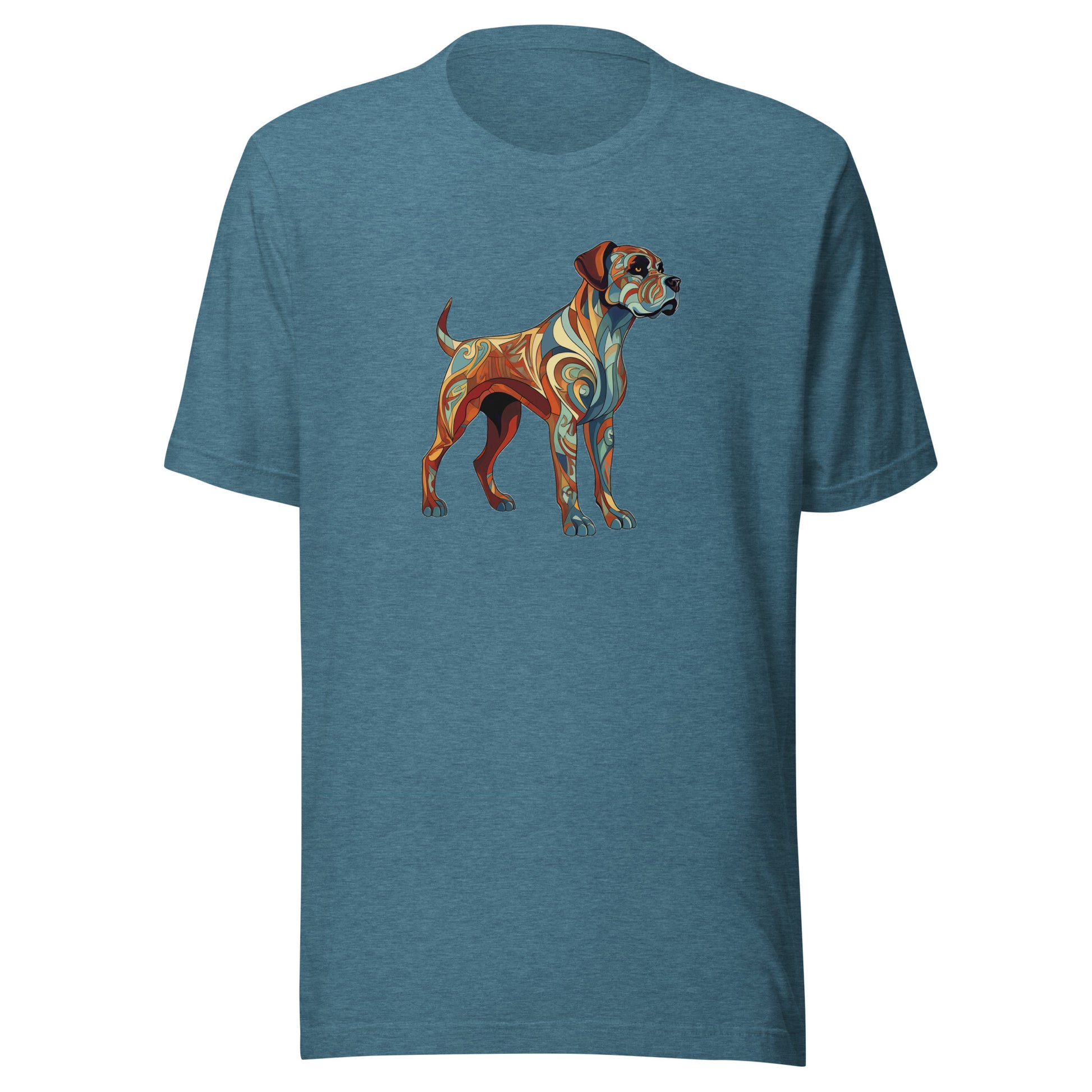 Presenting our "Art Nouveau" collection, where timeless style meets the charm of your favorite four-legged friends! Experience the allure of the Art Nouveau era captured in the jubilant prance of dogs designed showcase every enchanting detail. These vibrant pieces bring together the organic shapes and curvy lines typical of the Art Nouveau style, along with an array of brilliant colors to create a truly eye-catching design.Dark Heather is 50% cotton and 50% polyester for a softer, slightly stretchy feel and look. Other options are 100% cotton.