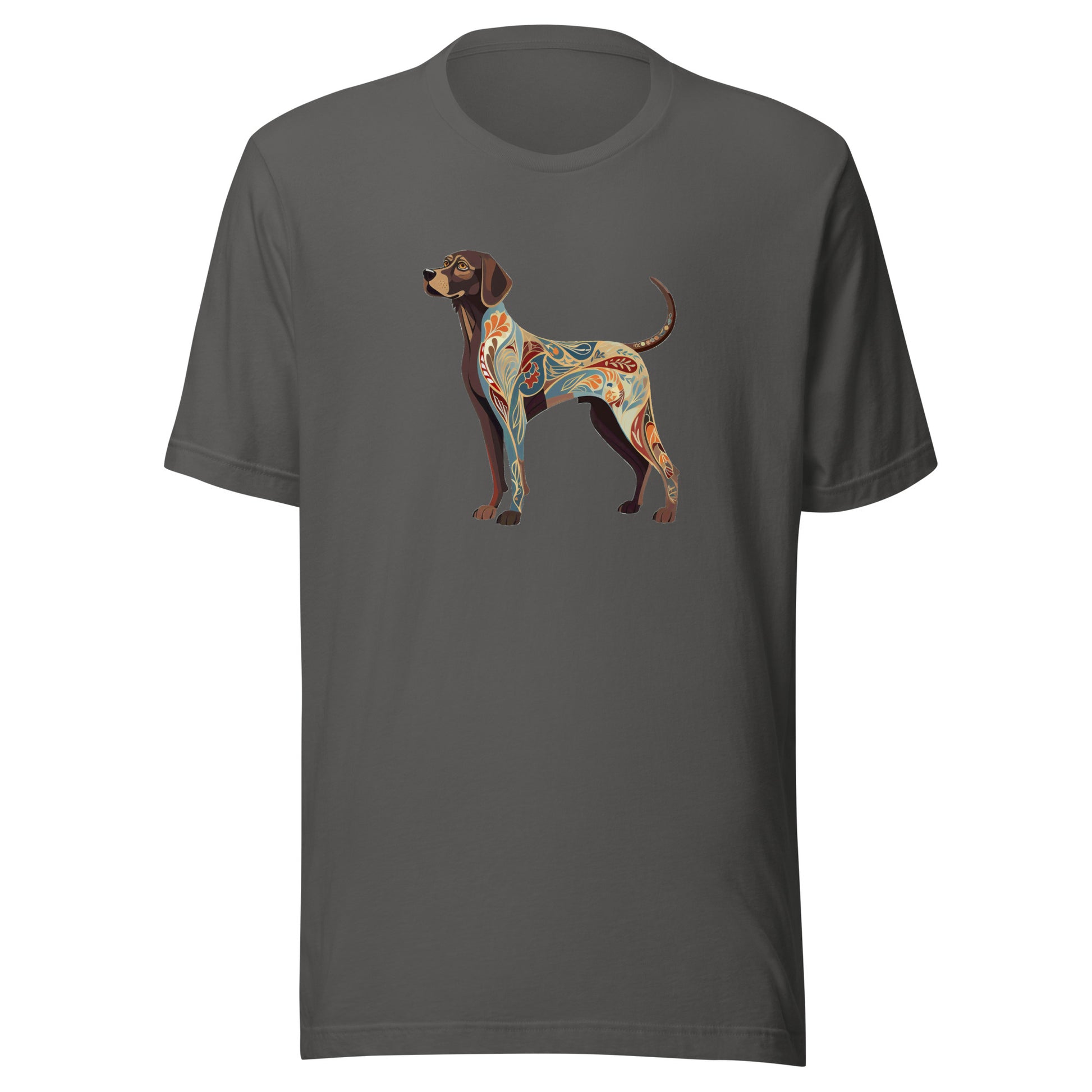 Presenting our "Art Nouveau" collection, where timeless style meets the charm of your favorite four-legged friends! Experience the allure of the Art Nouveau era captured in the jubilant prance of dogs designed showcase every enchanting detail. These vibrant pieces bring together the organic shapes and curvy lines typical of the Art Nouveau style, along with an array of brilliant colors to create a truly eye-catching design.Dark Heather is 50% cotton and 50% polyester for a softer, slightly stretchy feel and look. Other options are 100% cotton.