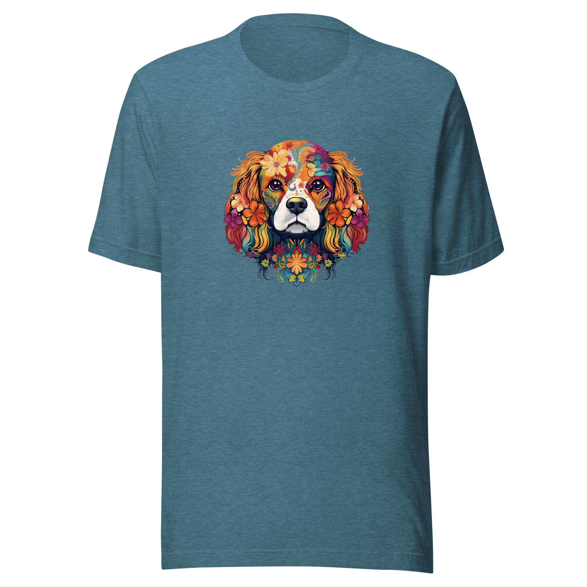 Introducing our vibrant “Spirit Animal Collection”, where your favorite dog breed merges with the captivating allure of the spirit animals inspired by the Day of the Dead. This unique t-shirt showcases a beautifully designed, brightly colored dog, exuding a mystical and whimsical energy that's bound to turn heads and spark conversations.Dark Heather is 50% cotton and 50% polyester for a softer, slightly stretchy feel and look. Other options are 100% cotton.