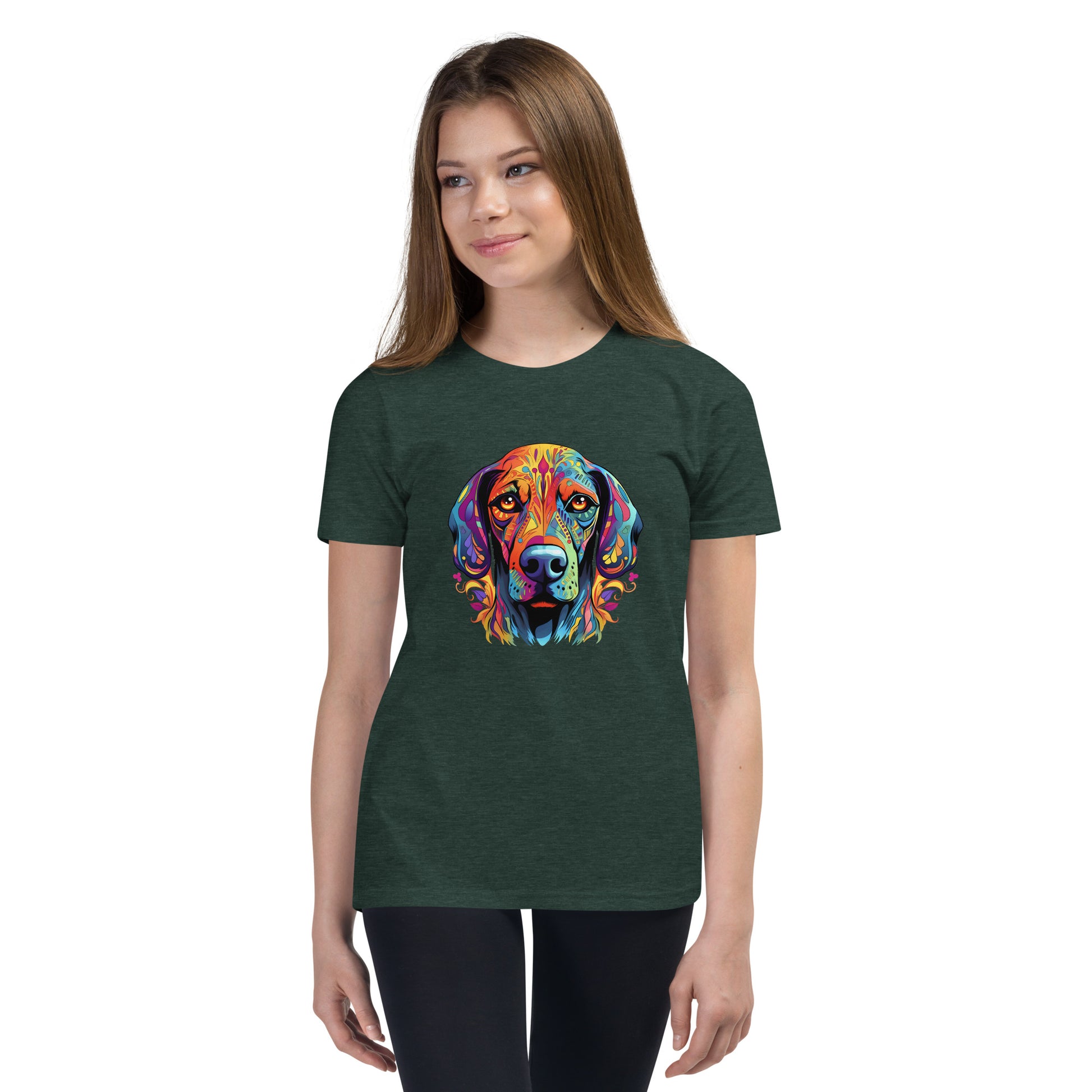 Introducing our vibrant “Spirit Animal Collection”, where your favorite dog breed merges with the captivating allure of the spirit animals inspired by the Day of the Dead. This unique t-shirt showcases a beautifully designed, brightly colored dog, exuding a mystical and whimsical energy that's bound to turn heads and spark conversations.Heather colors are 52% cotton and 48% polyester for a softer slightly stretchy feel. Athletic heather colors are 90% cotton and 10% polyester. The others are 100% cotton. The shirt is pre-shrunk to maintain size through multiple washes.