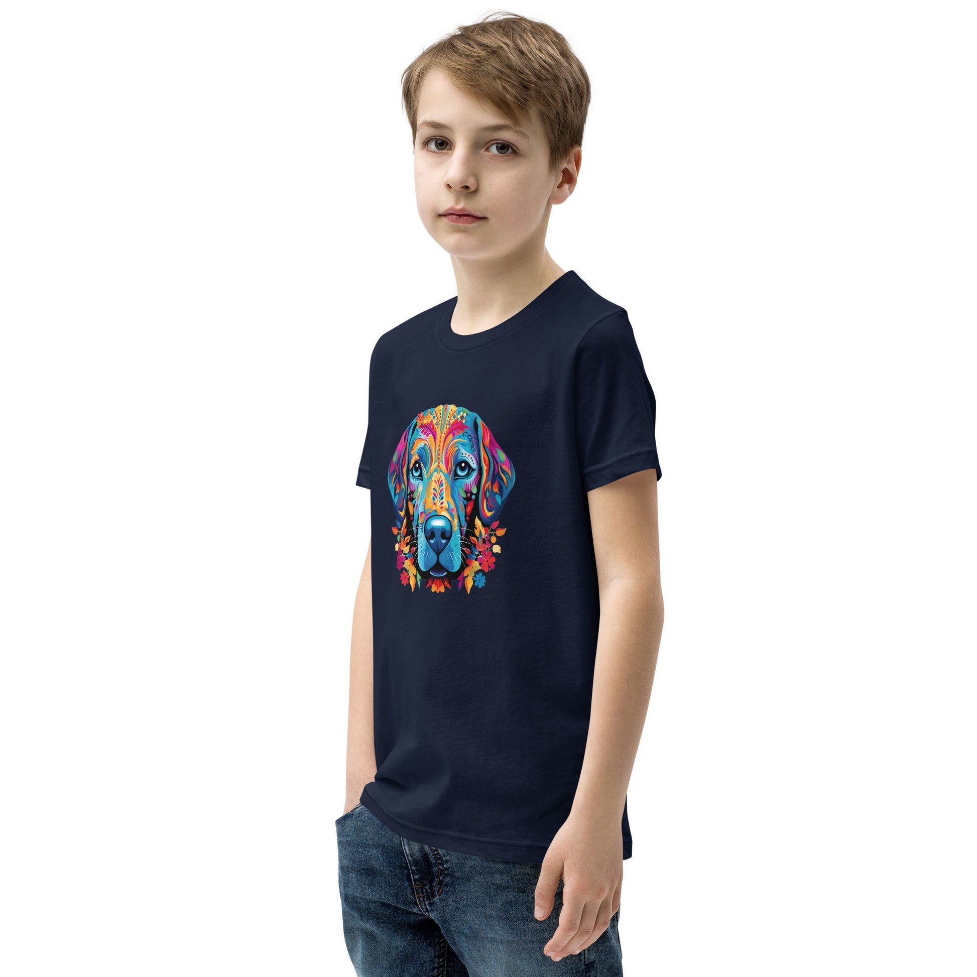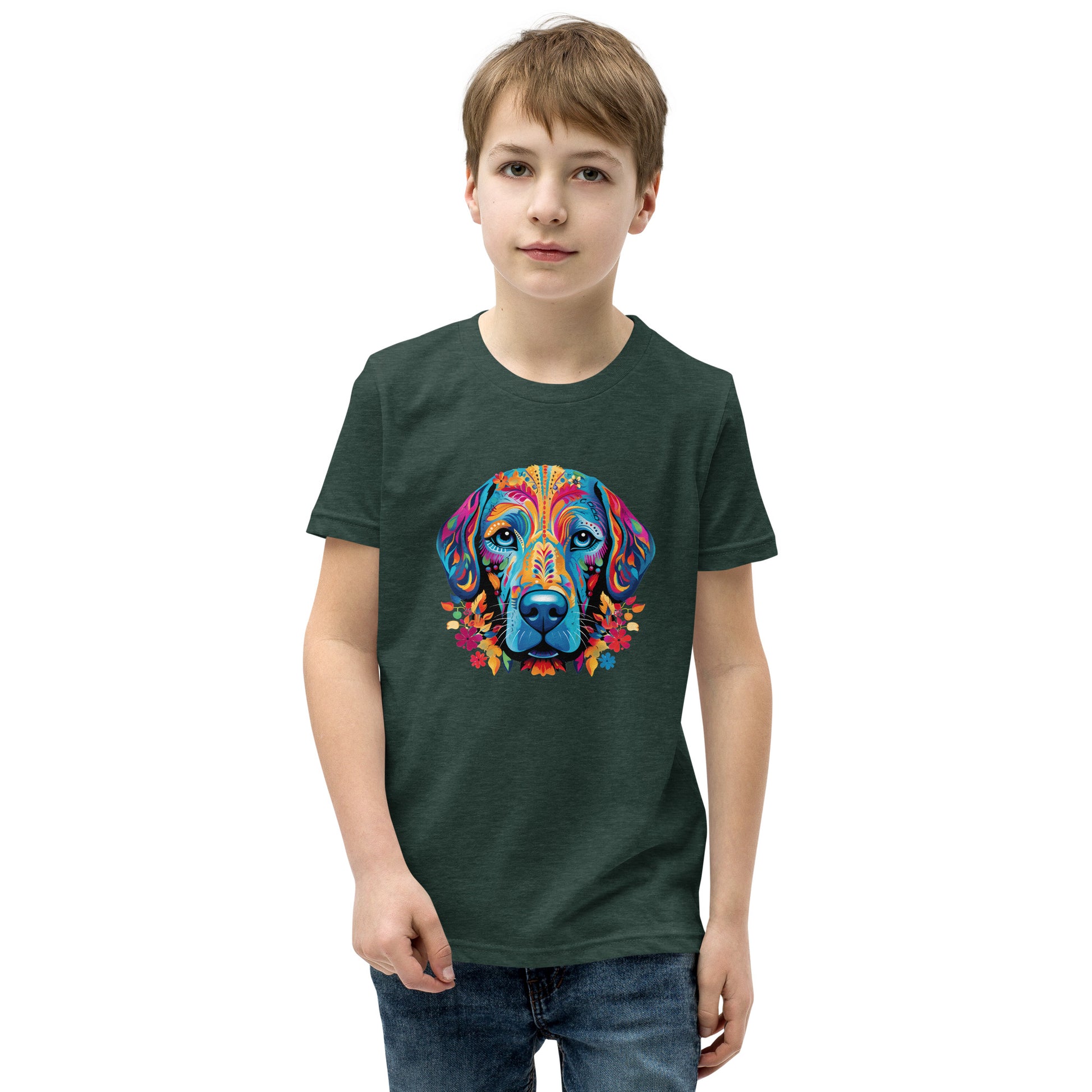 Introducing our vibrant “Spirit Animal Collection”, where your favorite dog breed merges with the captivating allure of the spirit animals inspired by the Day of the Dead. This unique t-shirt showcases a beautifully designed, brightly colored dog, exuding a mystical and whimsical energy that's bound to turn heads and spark conversations.Heather colors are 52% cotton and 48% polyester for a softer slightly stretchy feel. Athletic heather colors are 90% cotton and 10% polyester. The others are 100% cotton. The shirt is pre-shrunk to maintain size through multiple washes.